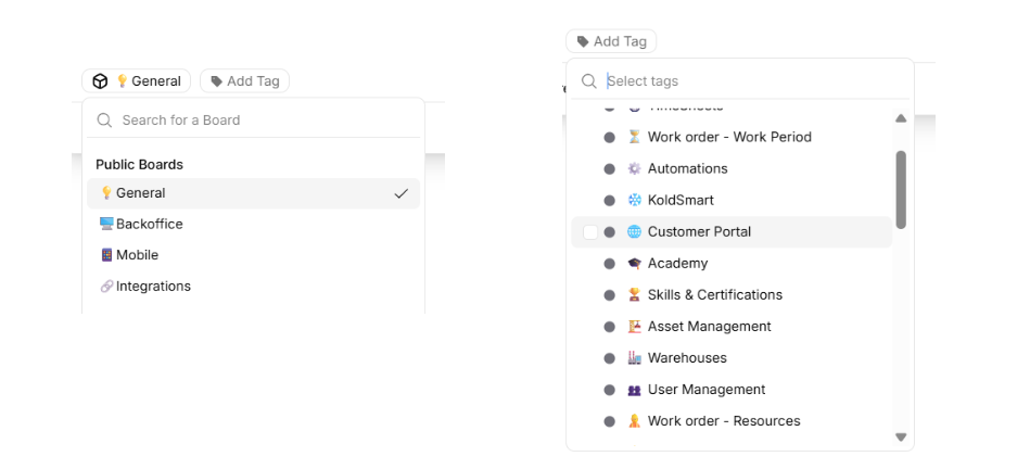 3. Select the board. If the Post is for a specific platform, select it. Add specific tags if you already know to which module it belongs.